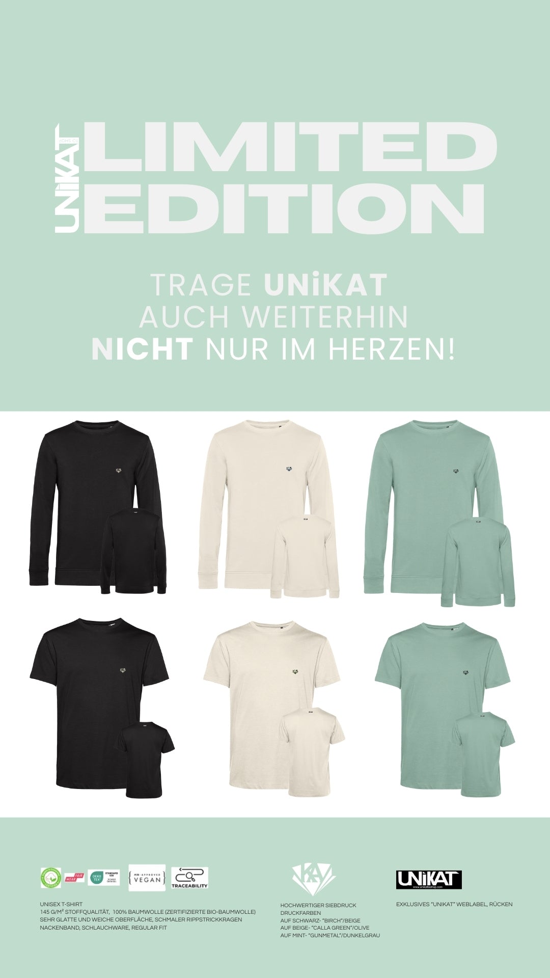 vielen Dank für eure Bestellungen unserer UNIKAT LIMITED Serie – und dafür, dass ihr Teil unserer Reise seid. Euer Vertrauen bedeutet uns sehr viel.