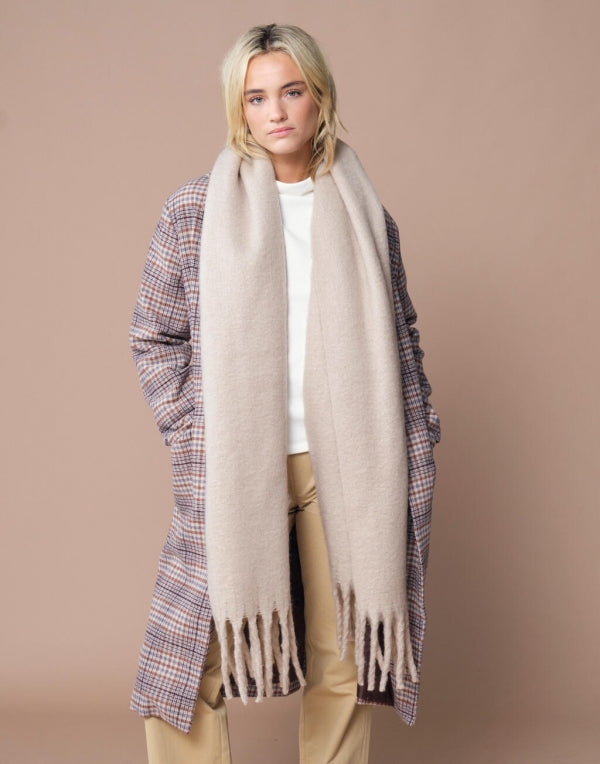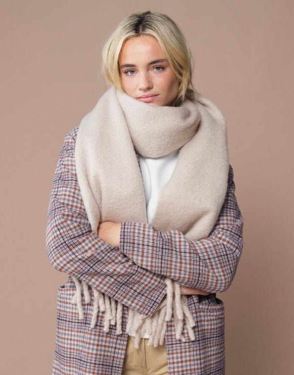 Das große, voluminöse Design lädt zum Einkuscheln ein, während die Tassel-Fransen dem Look eine lässig-elegante Note verleihen. Ein Accessoire, das Wärme, Stil und Umweltbewusstsein perfekt verbindet. ♻️💛