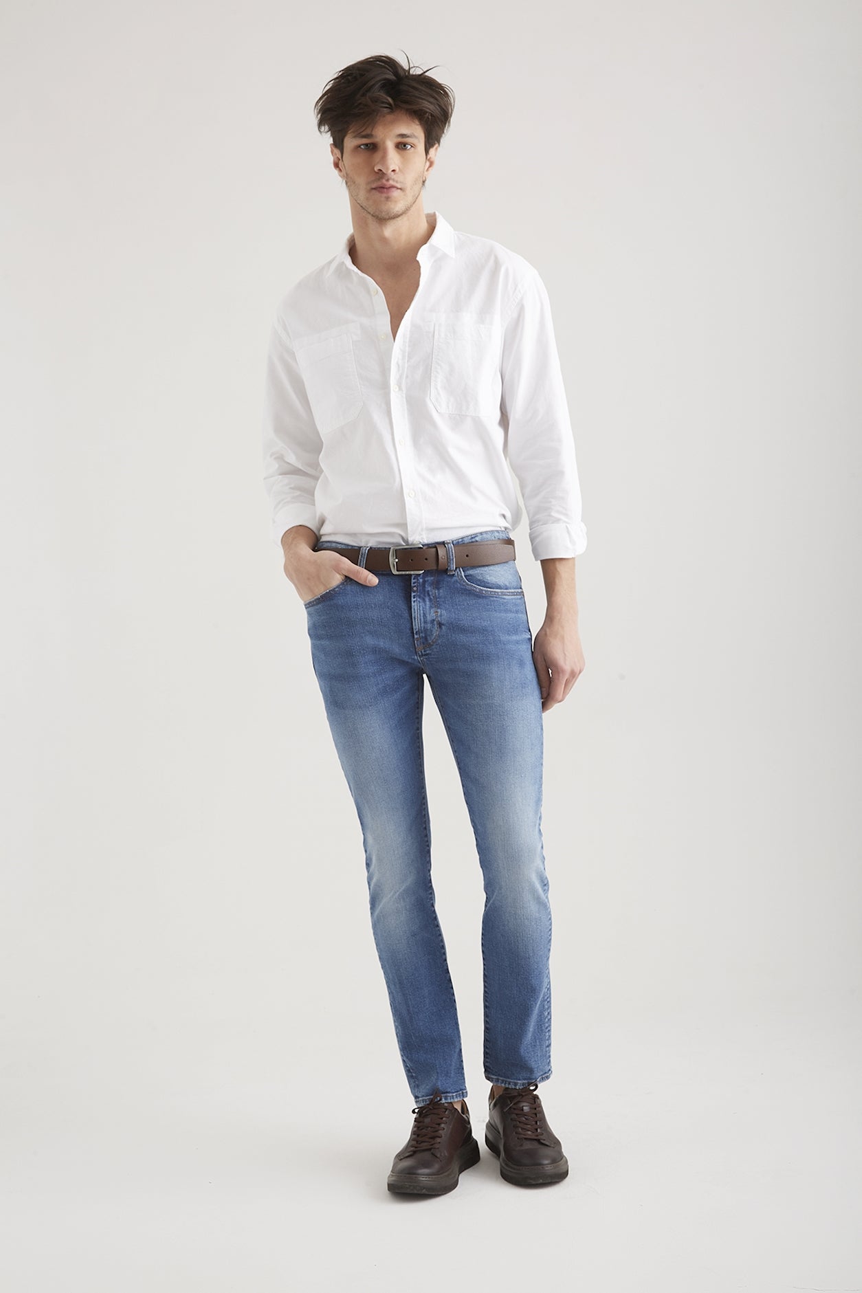 Die RAY Tapered Fit Jeans sind ein stylishes Basic, das in keinem Kleiderschrank fehlen darf. Mit ihrem gerade geschnittenen, taillierten Schnitt sind sie bequem und trendy zugleich. Gefertigt aus hochwertigem Denim von COJ Jeans, sorgen sie für ein angenehmes Tragegefühl – perfekt für den ganzen Tag!