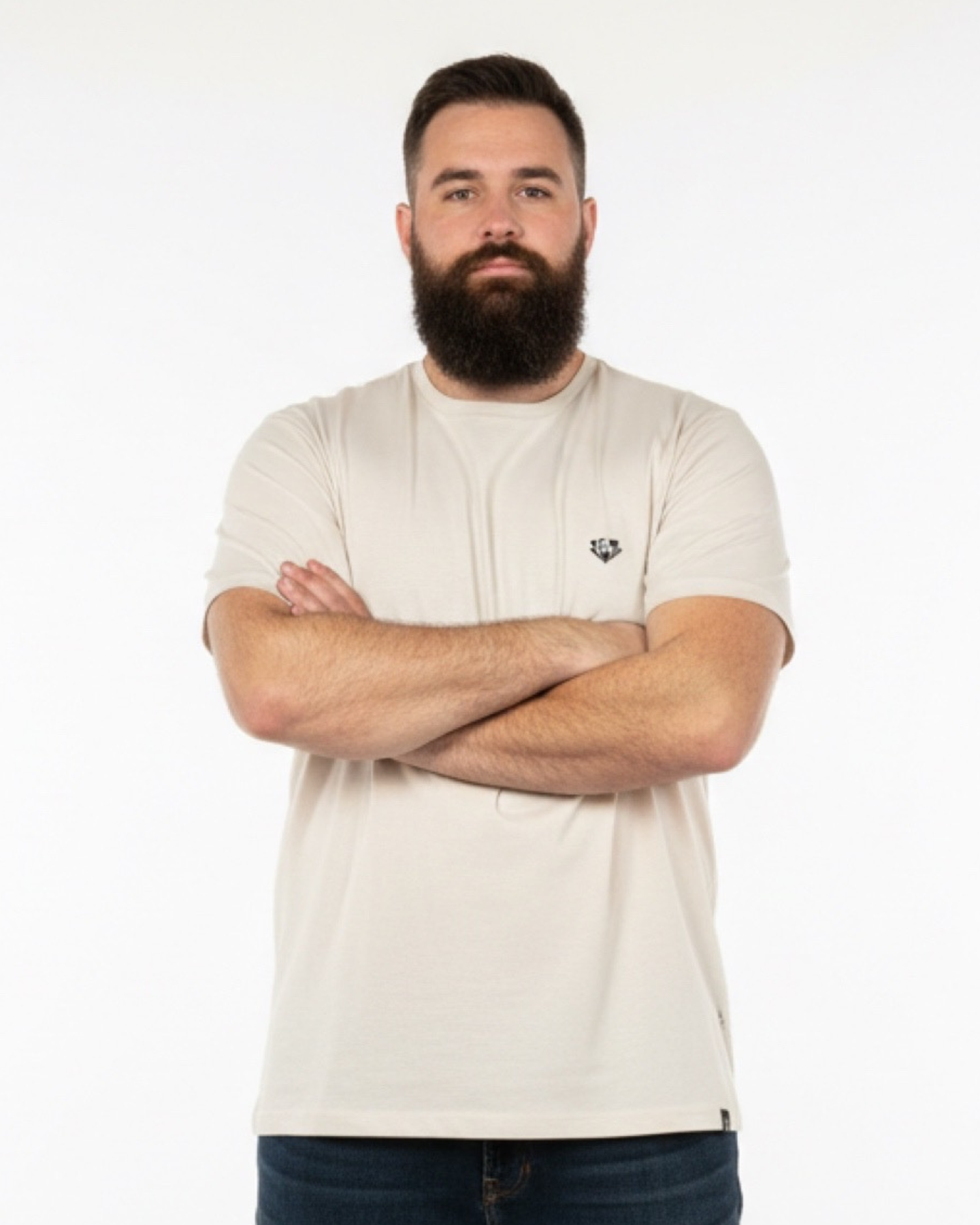 Dieses T-Shirt setzt auf Zurückhaltung mit Charakter: ein kleiner KA-Druck auf der Brust als dezentes Zeichen und ein feines Nackenlabel mit UNIKAT-Schriftzug.